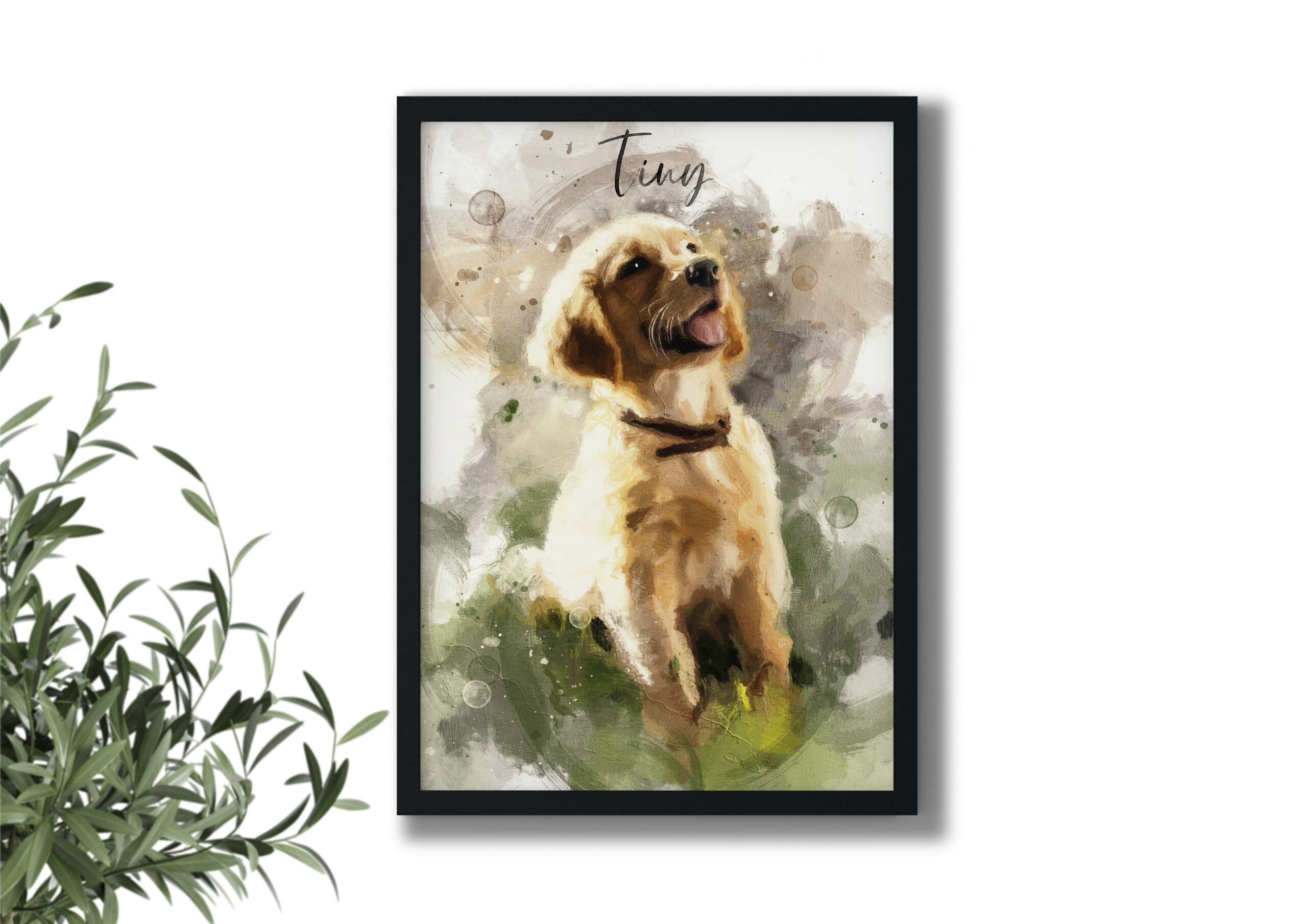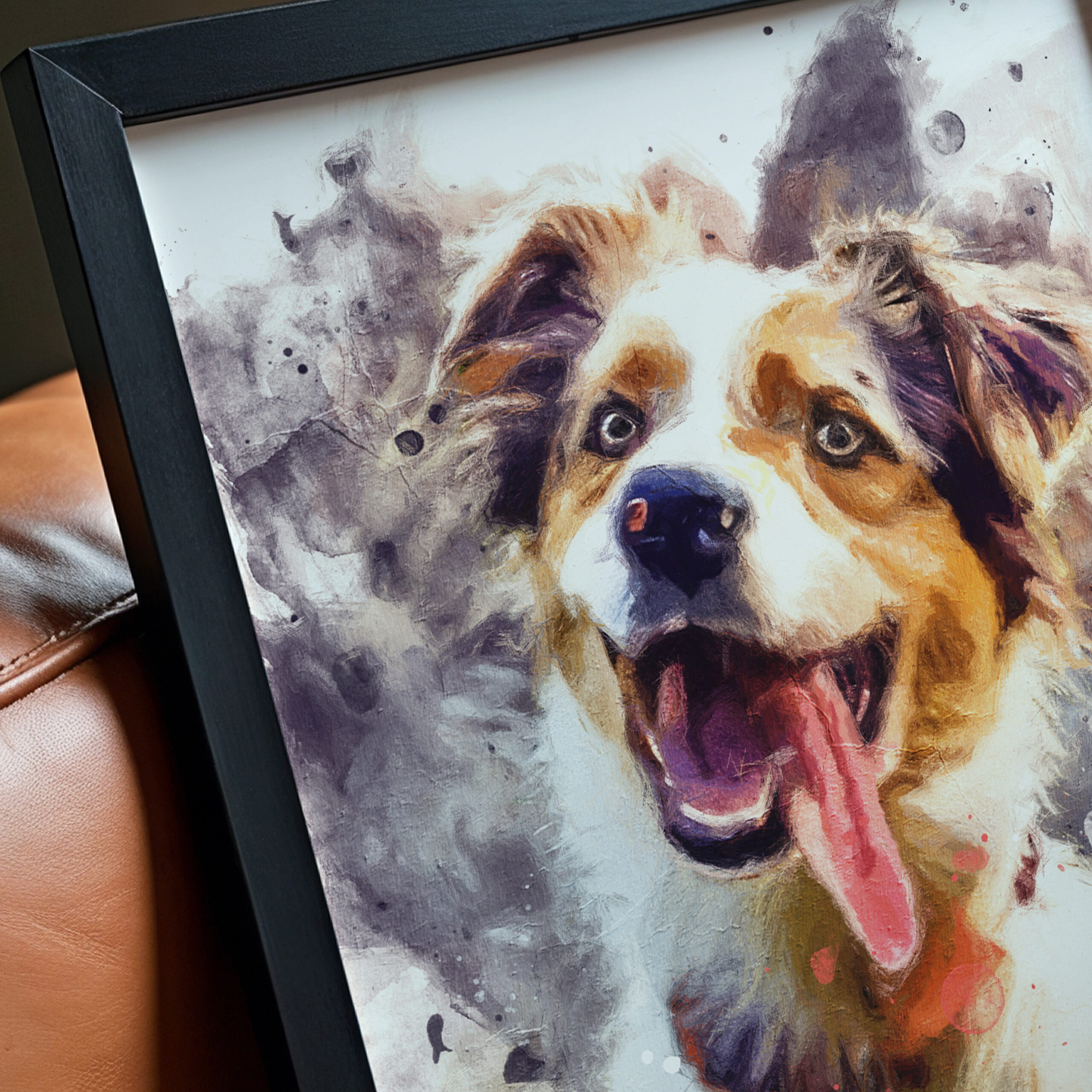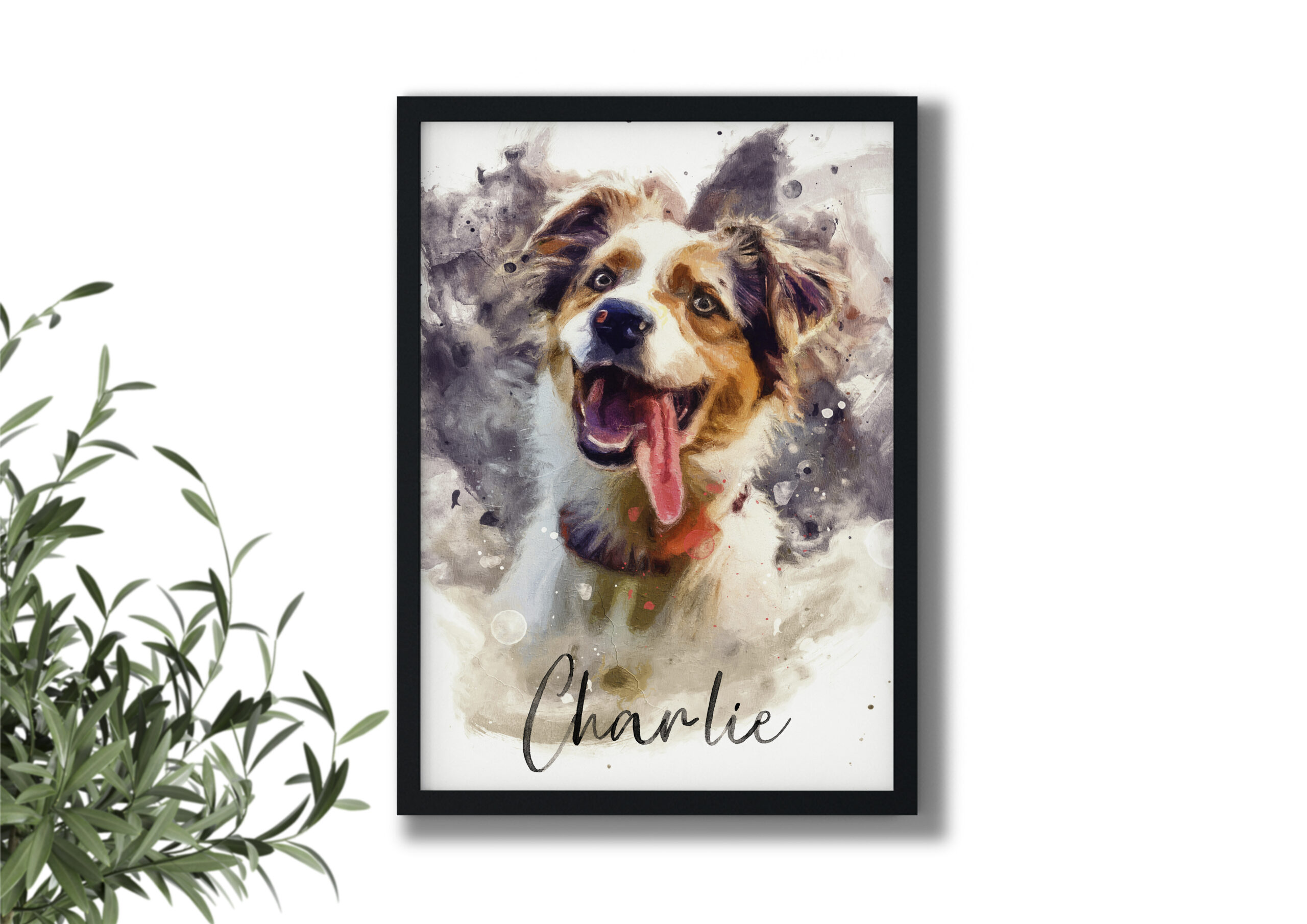 Personalised pet portrait created from your photo, available as a print, framed wall art, or digital file only. A meaningful gift for pet lovers and a lovely way to keep the memory of a beloved dog, cat, or other pet.