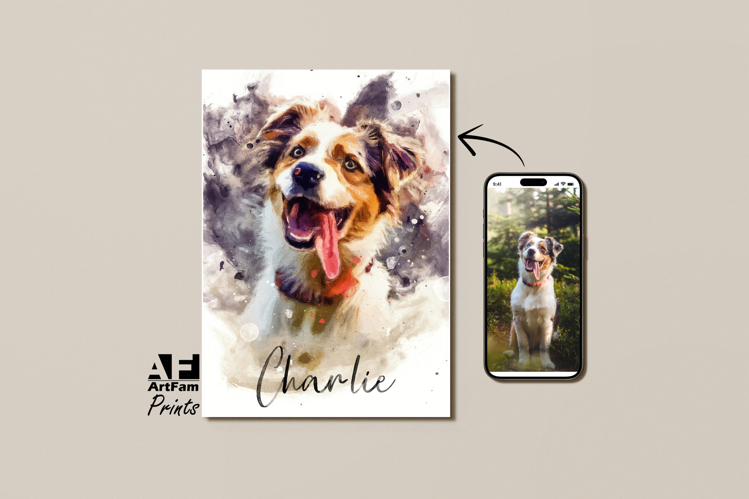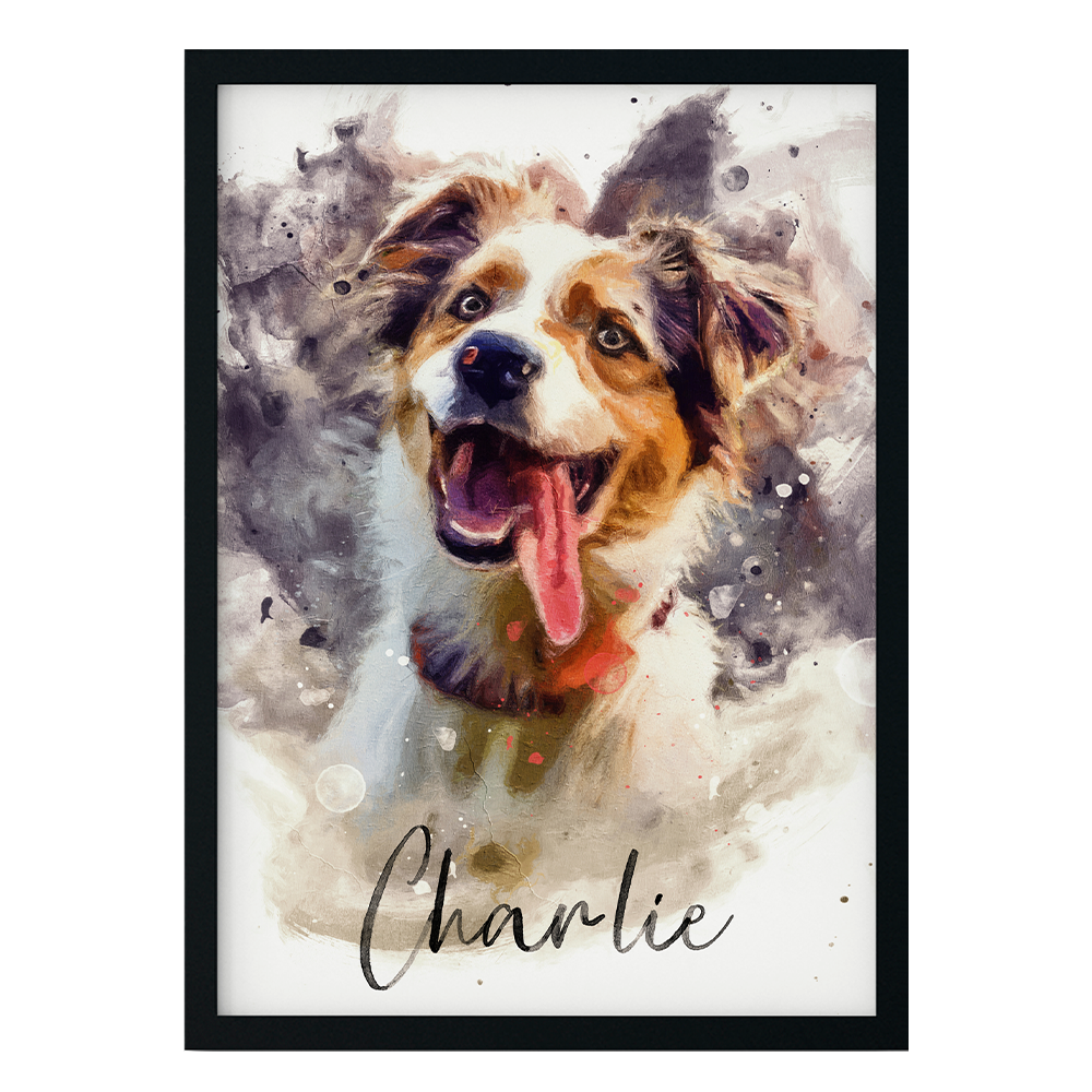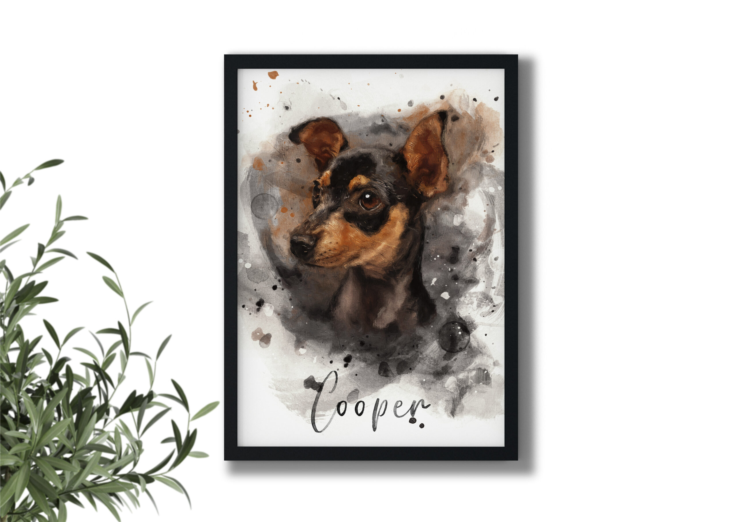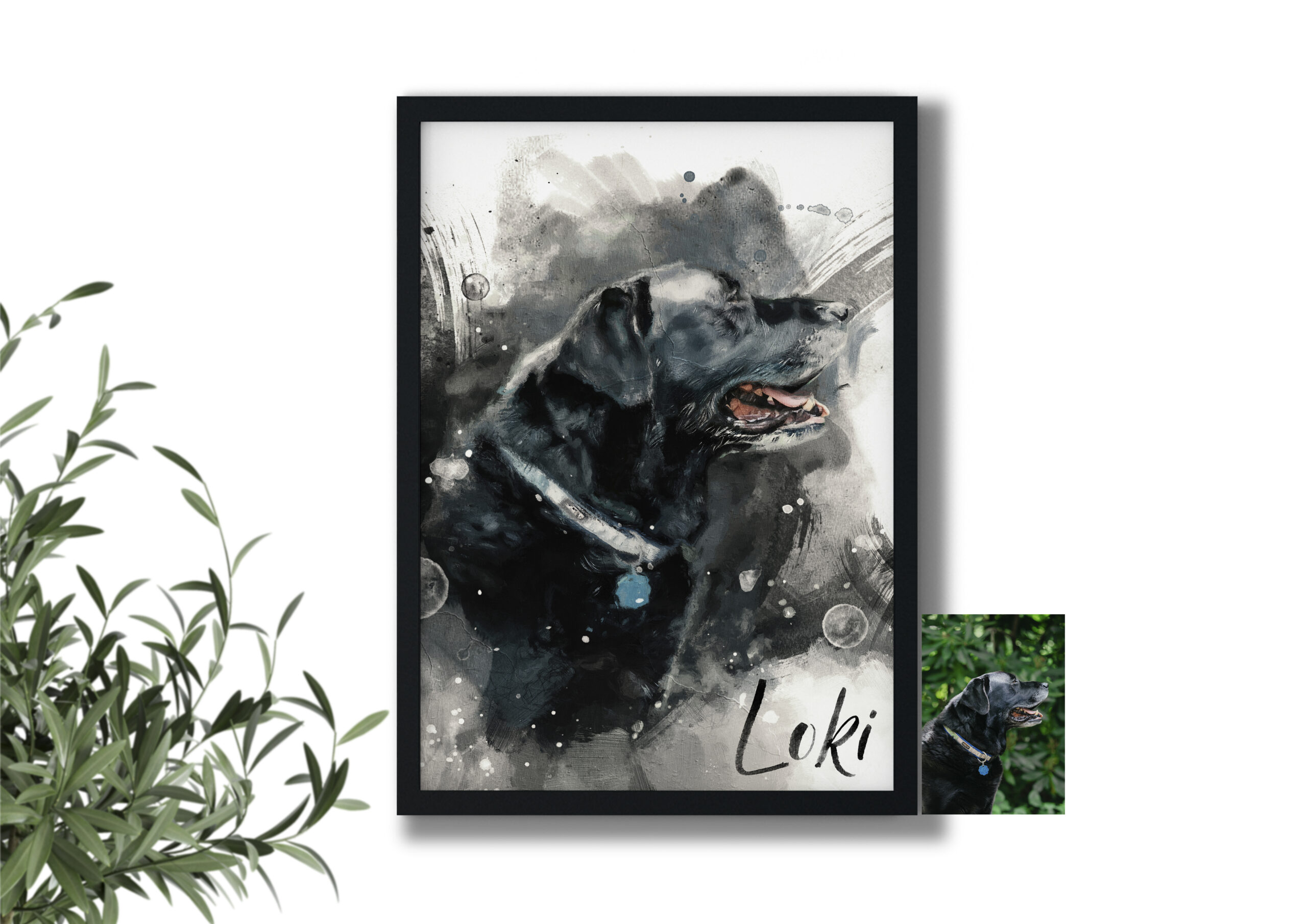 Personalised pet portrait created from your photo, available as a print, framed wall art, or digital file only. A meaningful gift for pet lovers and a lovely way to keep the memory of a beloved dog, cat, or other pet.