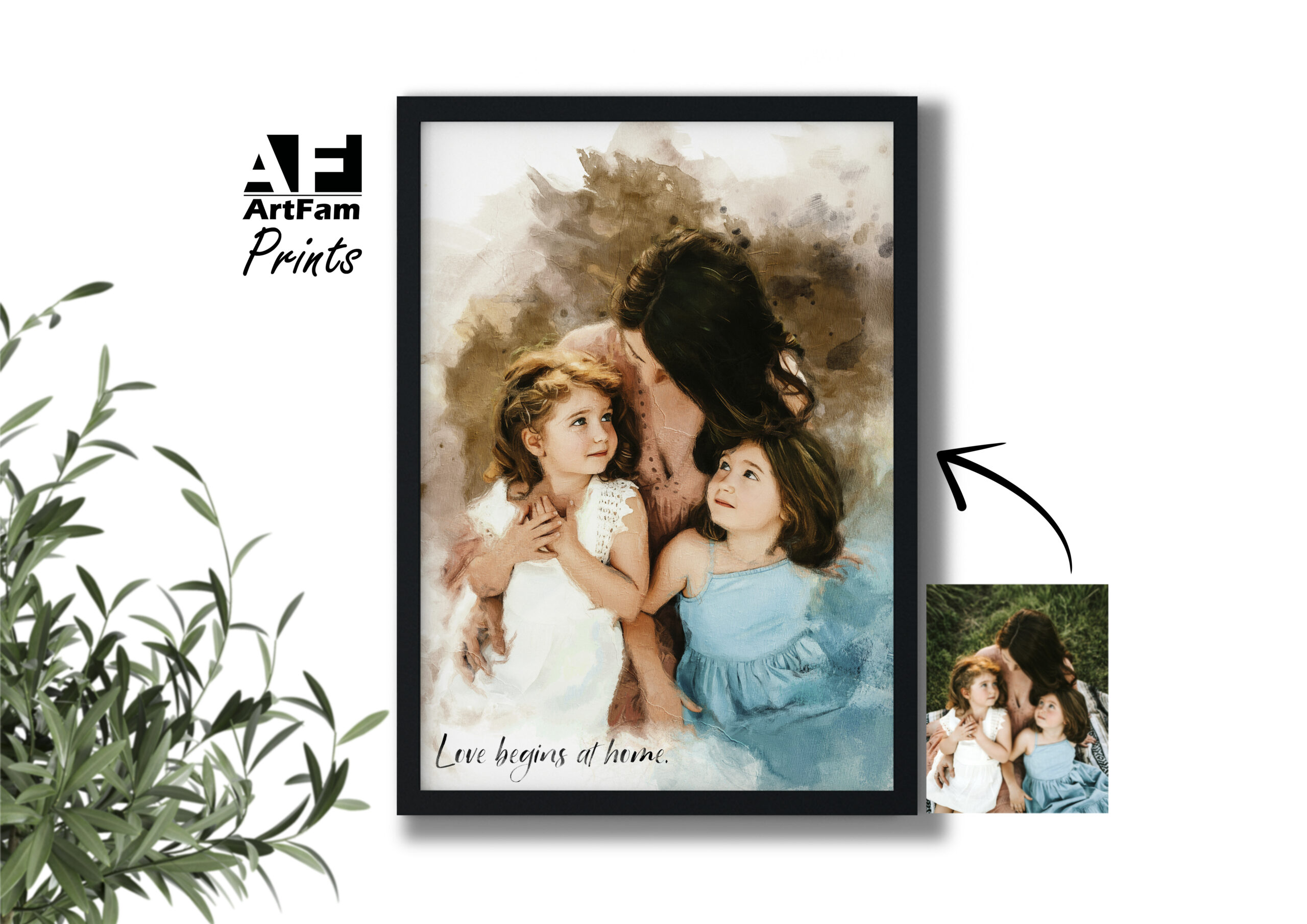 Turn your favourite family photo into a beautiful personalised family portrait that feels meaningful, timeless, and made just for you. Our aim is to transform your chosen image into a stunning custom family portrait from photo, created as a special keepsake for birthdays, anniversaries, housewarming gifts, memorials, or simply as a lovely piece of wall art for your home.