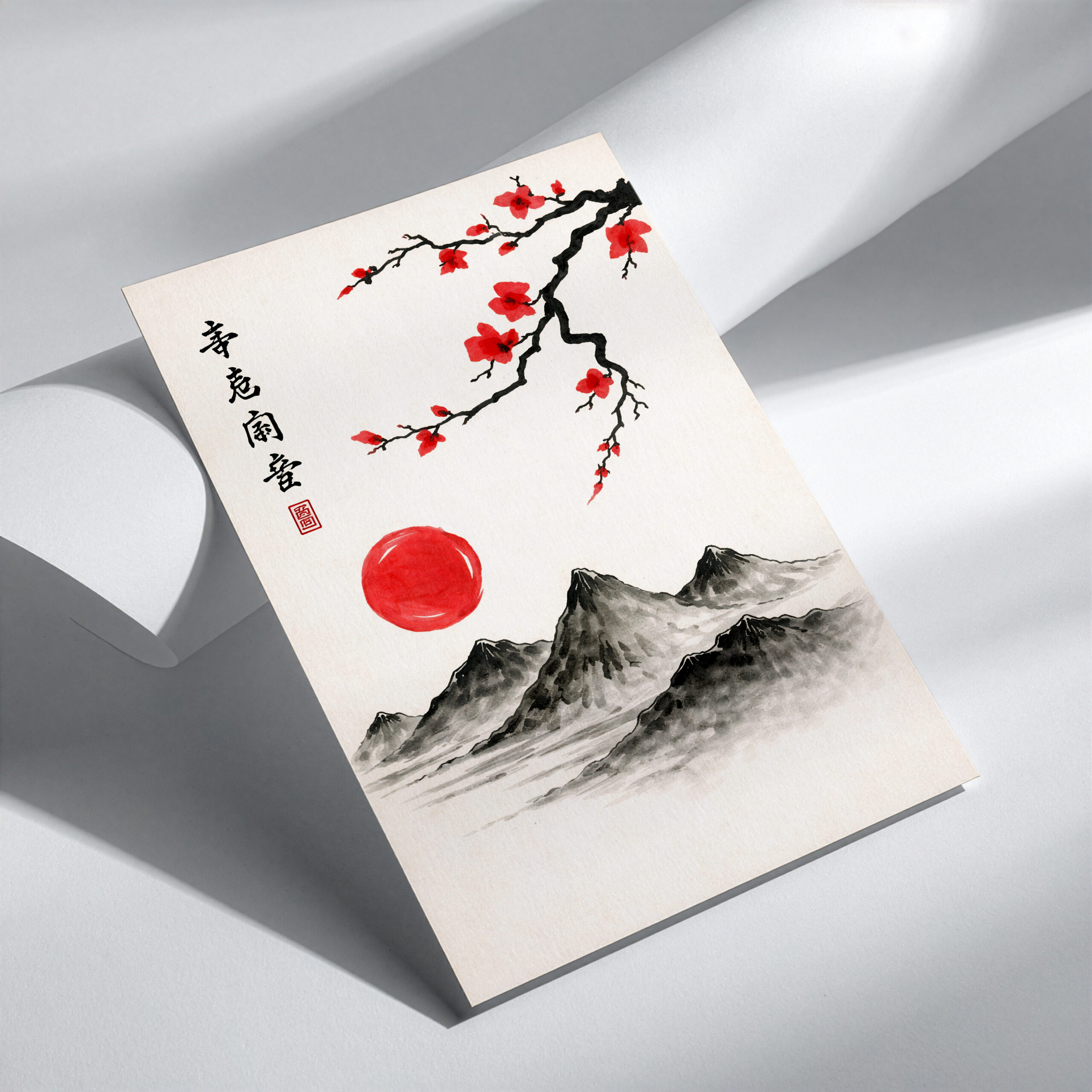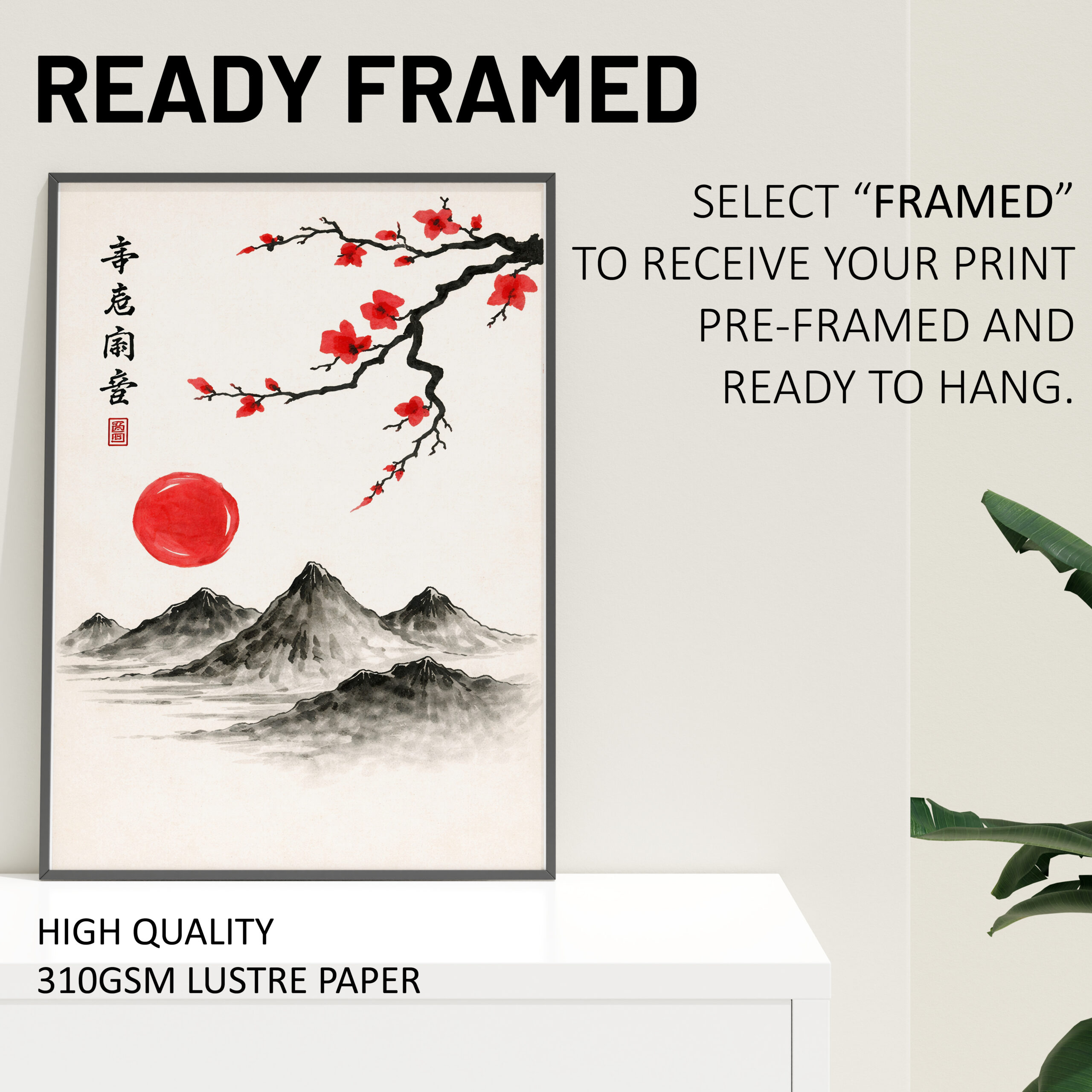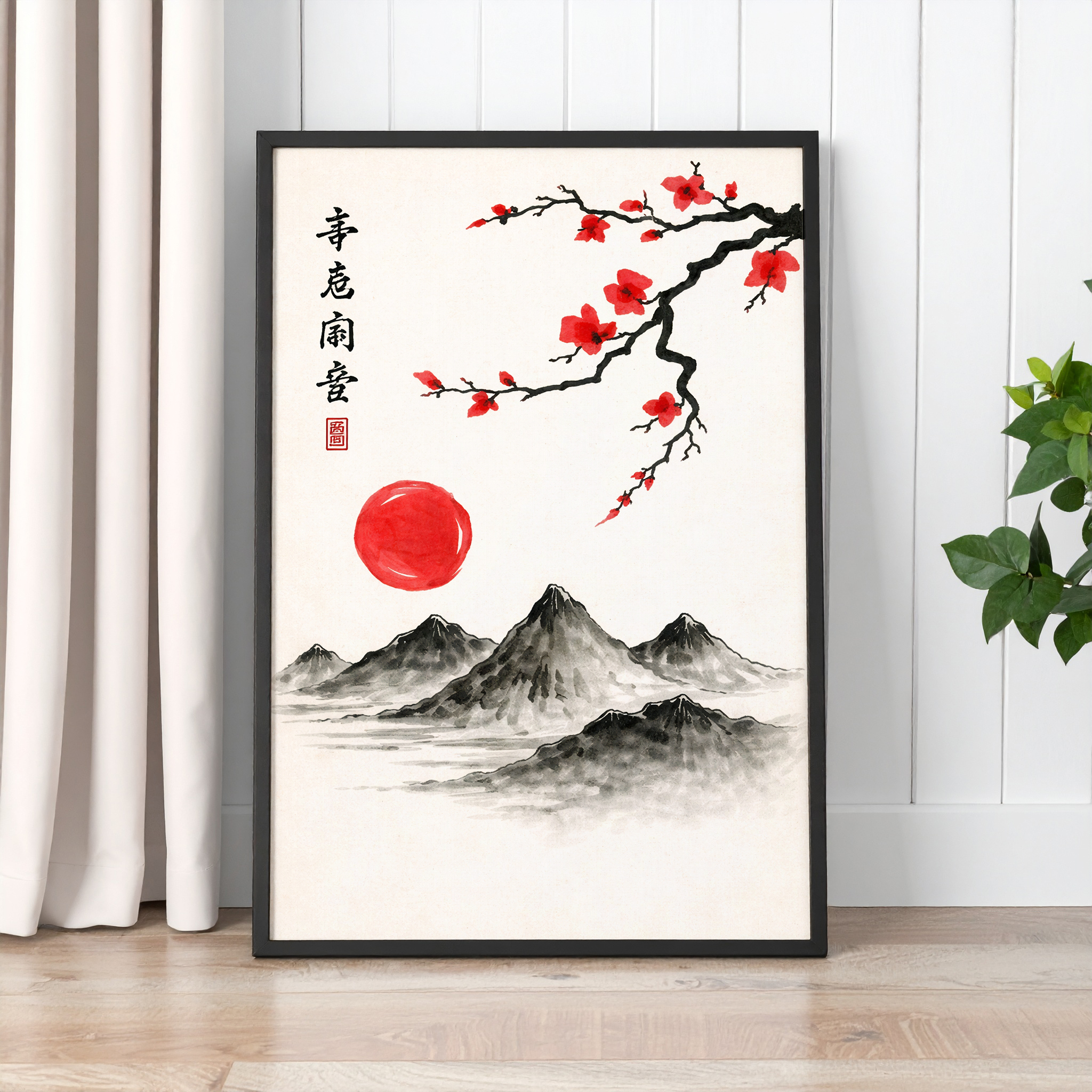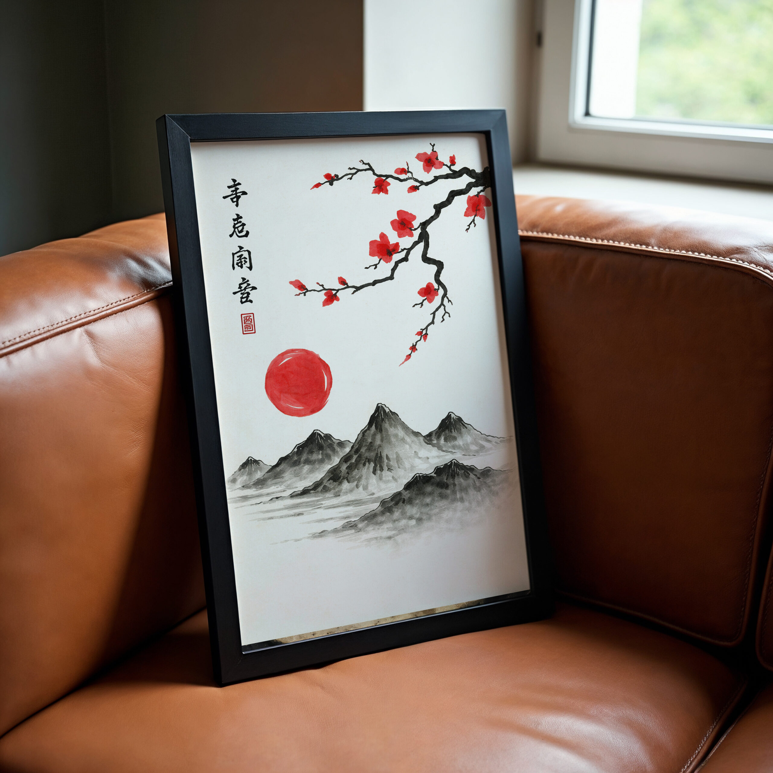 This piece is ideal for anyone who loves blossom wall art, mountain prints, Japanese-inspired decor, or minimalist nature posters with a refined and decorative look. It works beautifully in living rooms, bedrooms, hallways, offices, or reading corners where you want to create a calm and thoughtful atmosphere. The simple design makes it easy to style in modern, neutral, or nature-inspired interiors while still standing out as a feature on the wall.