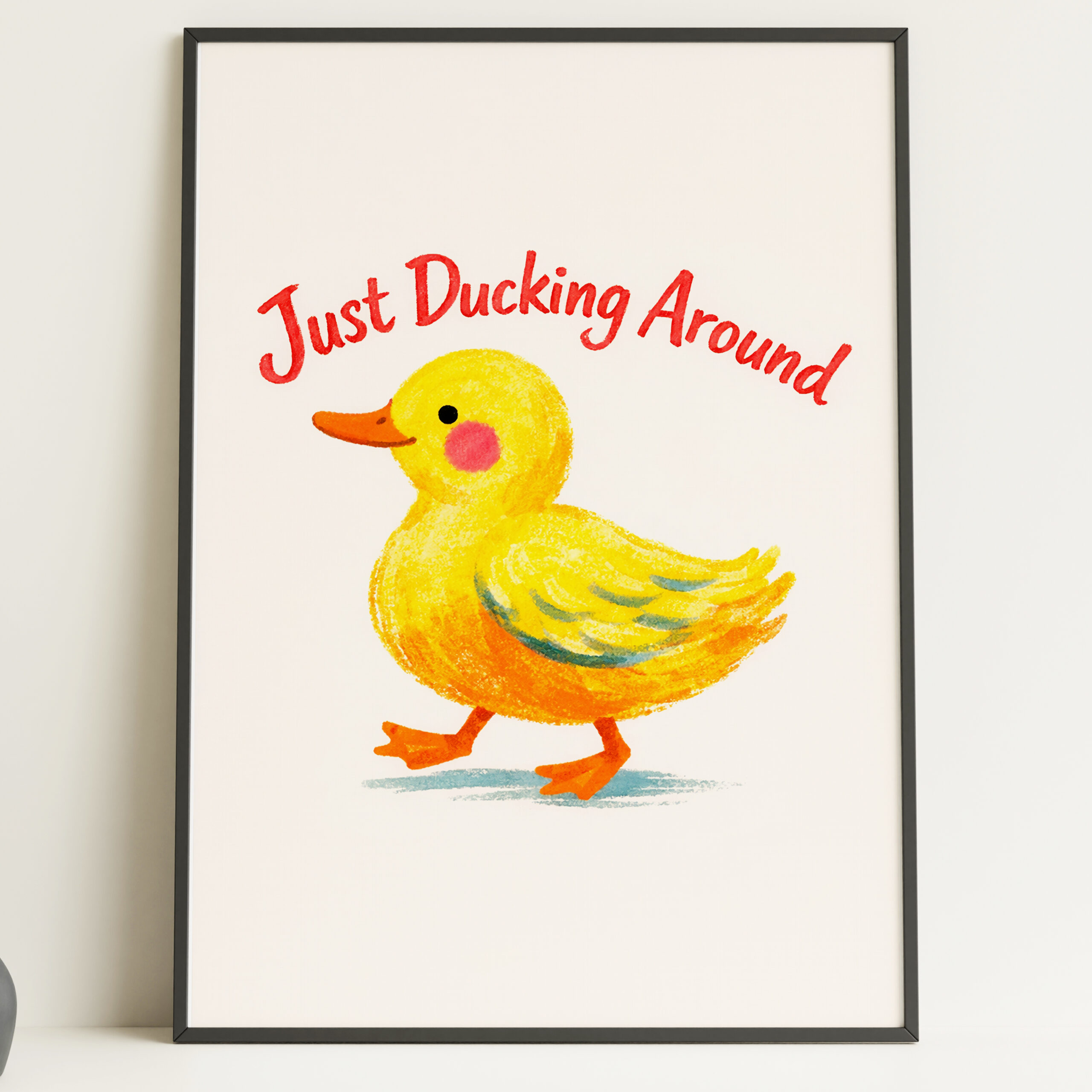 This print is ideal for nurseries, children’s bedrooms, playrooms, kitchens, or casual living spaces where you want to add a bit of humour and colour. It is a great choice for anyone who loves duck wall art, funny animal posters, or cute prints with a simple and cheerful style. The clean background also makes the artwork easy to display on its own or as part of a gallery wall with other quirky animal prints.