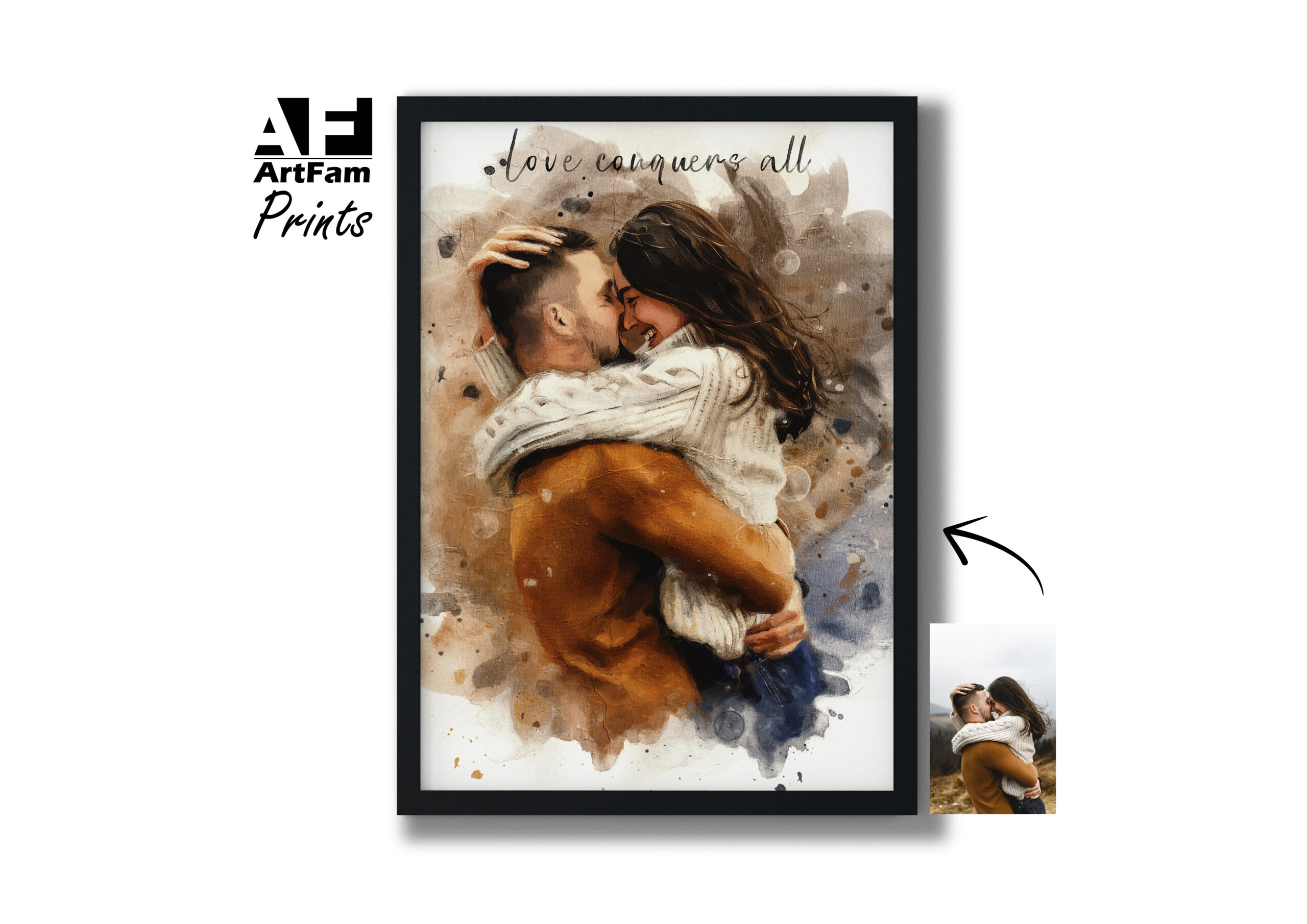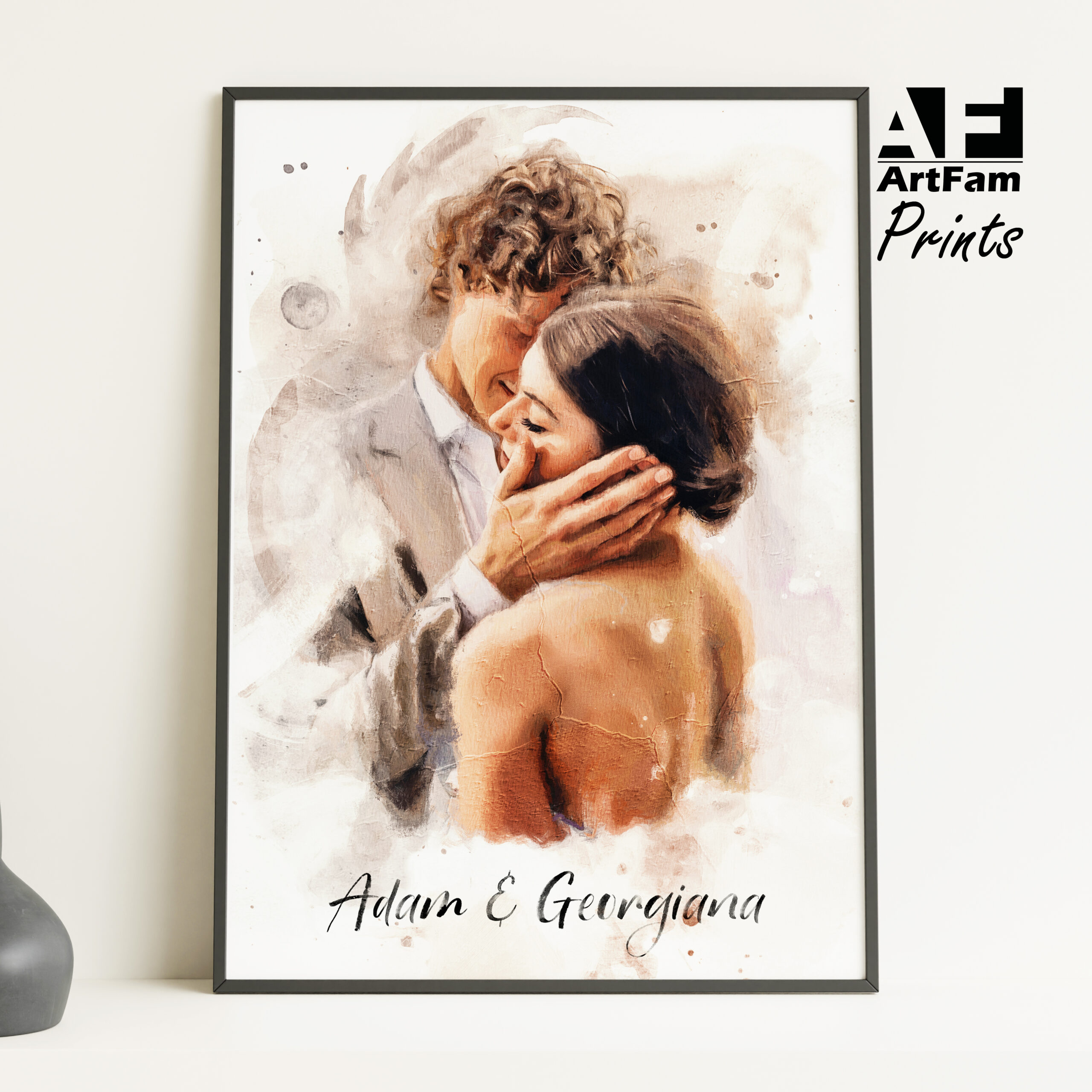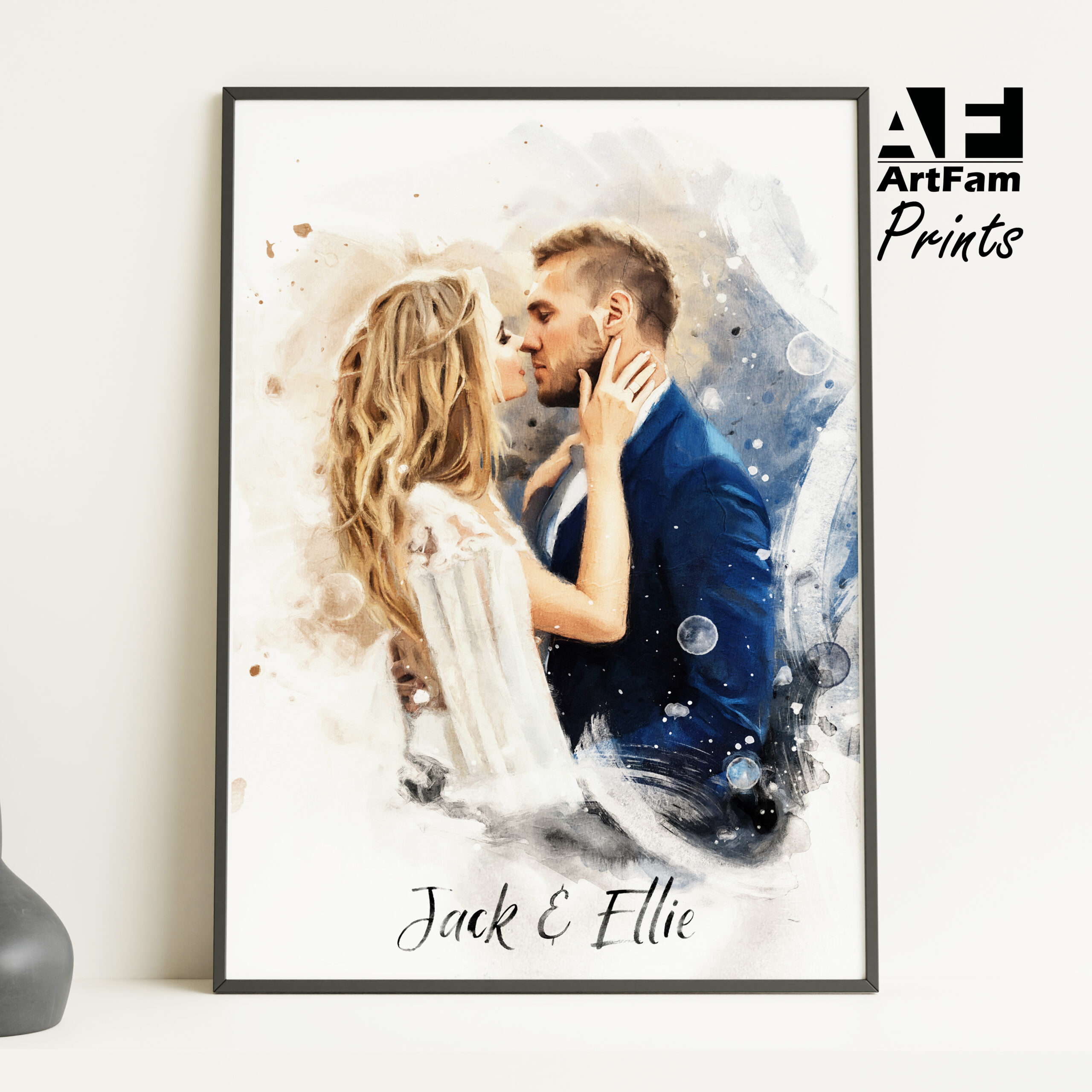 Personalised anniversary portrait created from your photo, available as a print, framed wall art, or digital file only. A thoughtful keepsake for couples celebrating a special milestone.